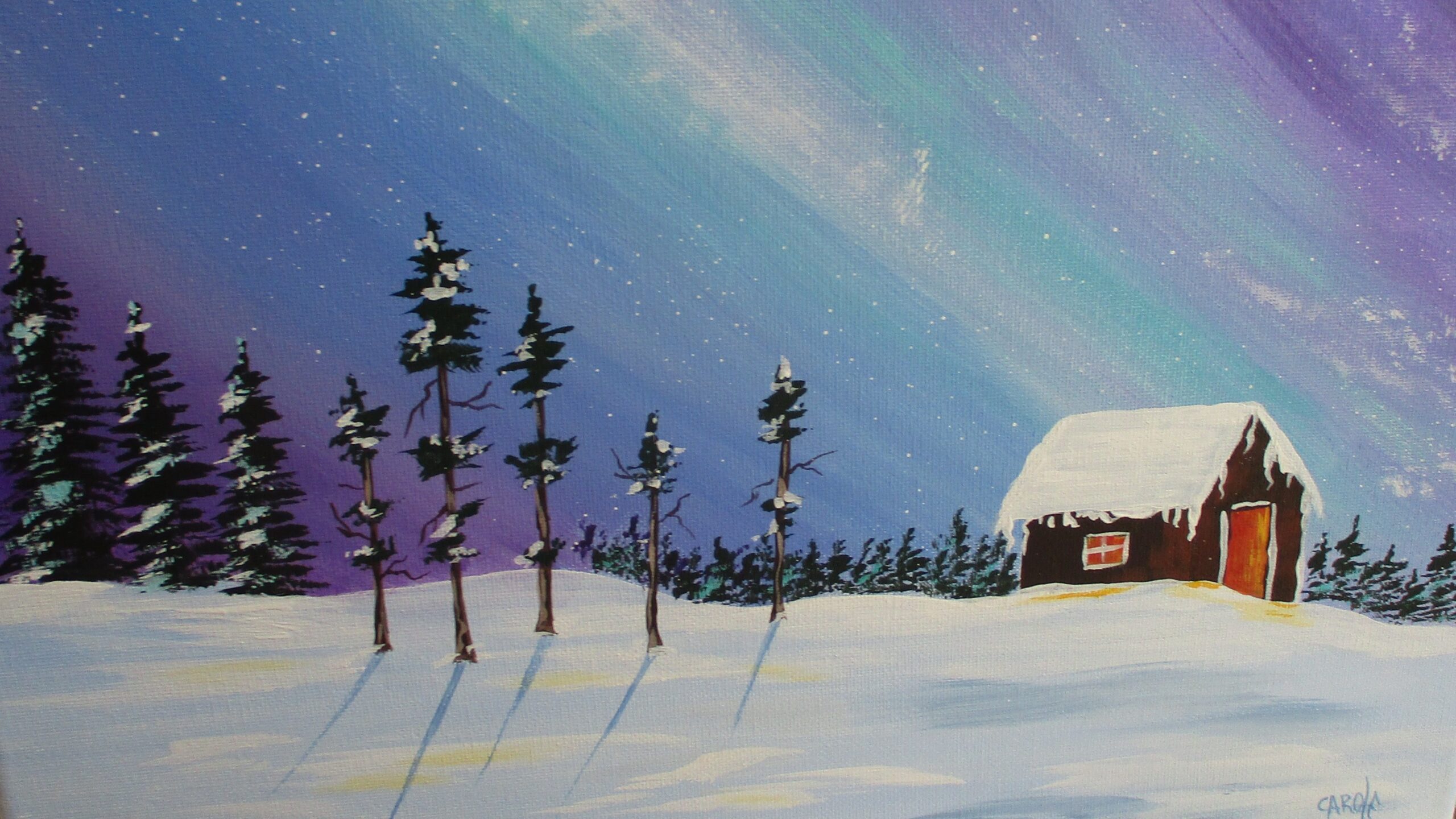 What is more fun on a January afternoon than painting this Snowy Winter Cabin?